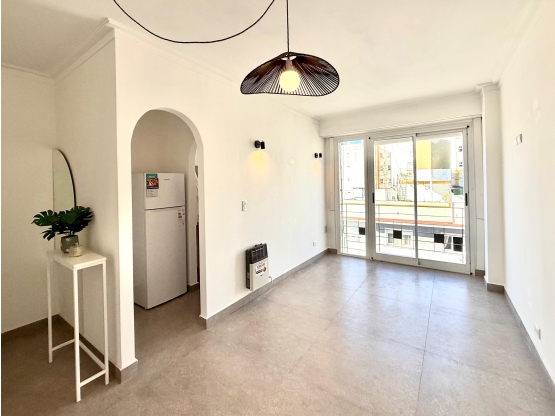 Departamento dispuesto todo al frente sobre la calle Alberti, dos ambientes muy luminosos. Amplio ventanal con balcón francés.
